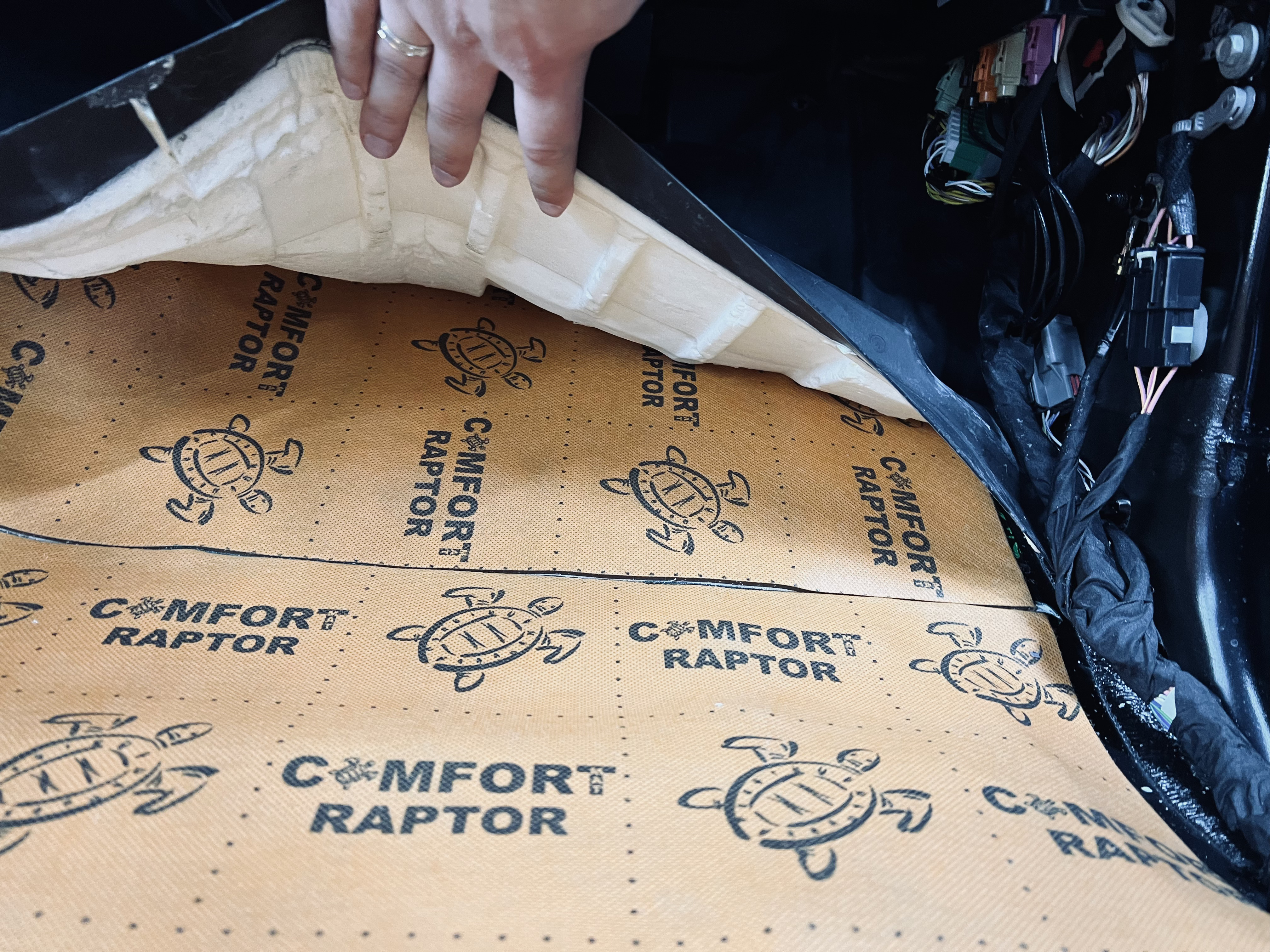 Вторым слоем уложили Шумоизоляция Comfort Mat Raptor, поглощающую шумы средней и высокой частоты.