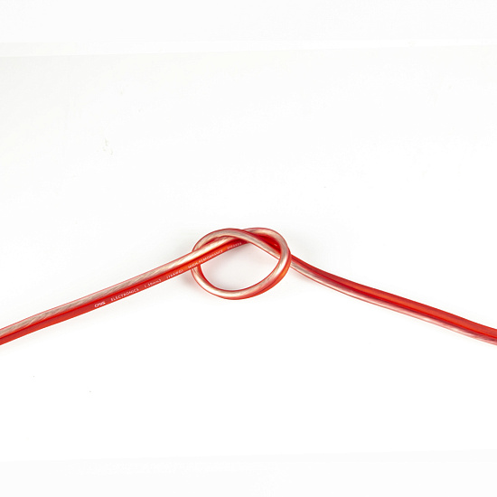 Гибкий акустический кабель, предназначенный для трансляции звукового сигнала от автомагнитолы (усилителя) на аудиосистему. По сравнению со стандартными электрокабелями имеет меньшее сечение жил, при этом их большее количество, что придает кабелю повышенную гибкость. Проводник изготовлен из омедненного алюминия, что существенно улучшило электротехнические характеристики. Значение внешнего диаметра 2х3 мм. Изоляция красного цвета выполнена из сверхгибкого силиконового материала.