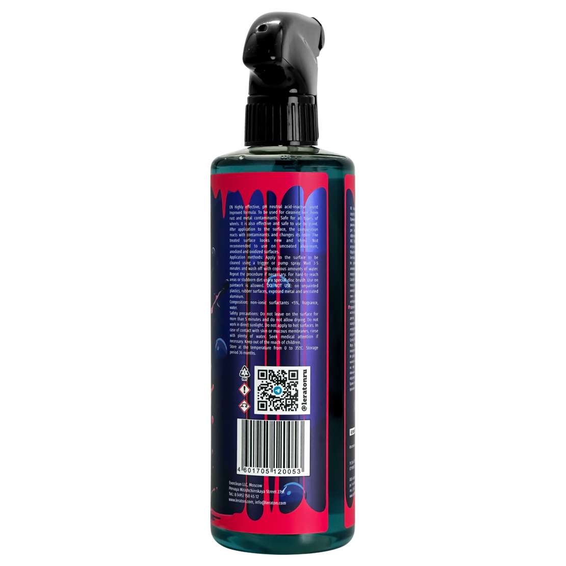 Кислотно-нейтральный состав с улучшенной формулой для удаления грязи, коррозионных повреждений с автомобильных дисков. Полностью безопасен для их внешнего вида, не повреждает лакокрасочное покрытие. После обработки создается максимальный эффект новизны и эстетичный блеск. Средство не подходит для применения в открытых оксидированных и анодированных местах. Необходимо исключить нанесение на детали из пластика, резины. Наносится помповым, триггерным распылителем.